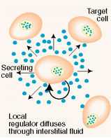 Paracrine, autocrine and synaptic are three types of local hormone signaling. In paracrine signaling, hormones are released into the fluid between cells (the interstitial fluid) and diffuse to nearby target cells. Hormones that influence secretions or other processes on the same cells that released them are said to be autocrine signalers. The more specialized synaptic signaling occurs between neurons (the nerve cells that make up the nervous system) and between neurons and muscle cells, allowing nerve cells to talk to each other and to muscles. Chemical Structures Hormones are also grouped according to chemical structure. Structures dictate if the hormone prefers to be surrounded by water or fat (water or fat soluble), which determines: